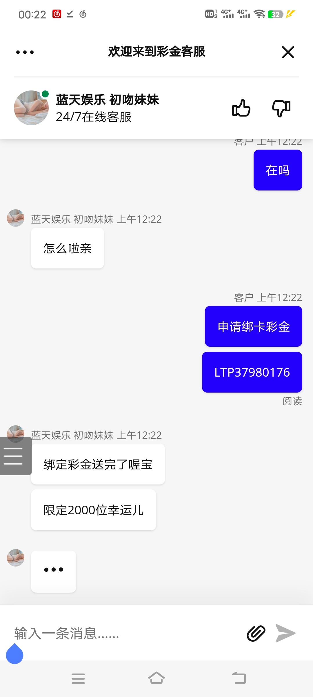 一开始app进不去。能进去在线客服又排队,好不容易有客服说送完了没名额了,狗庄格局太小了实力不行