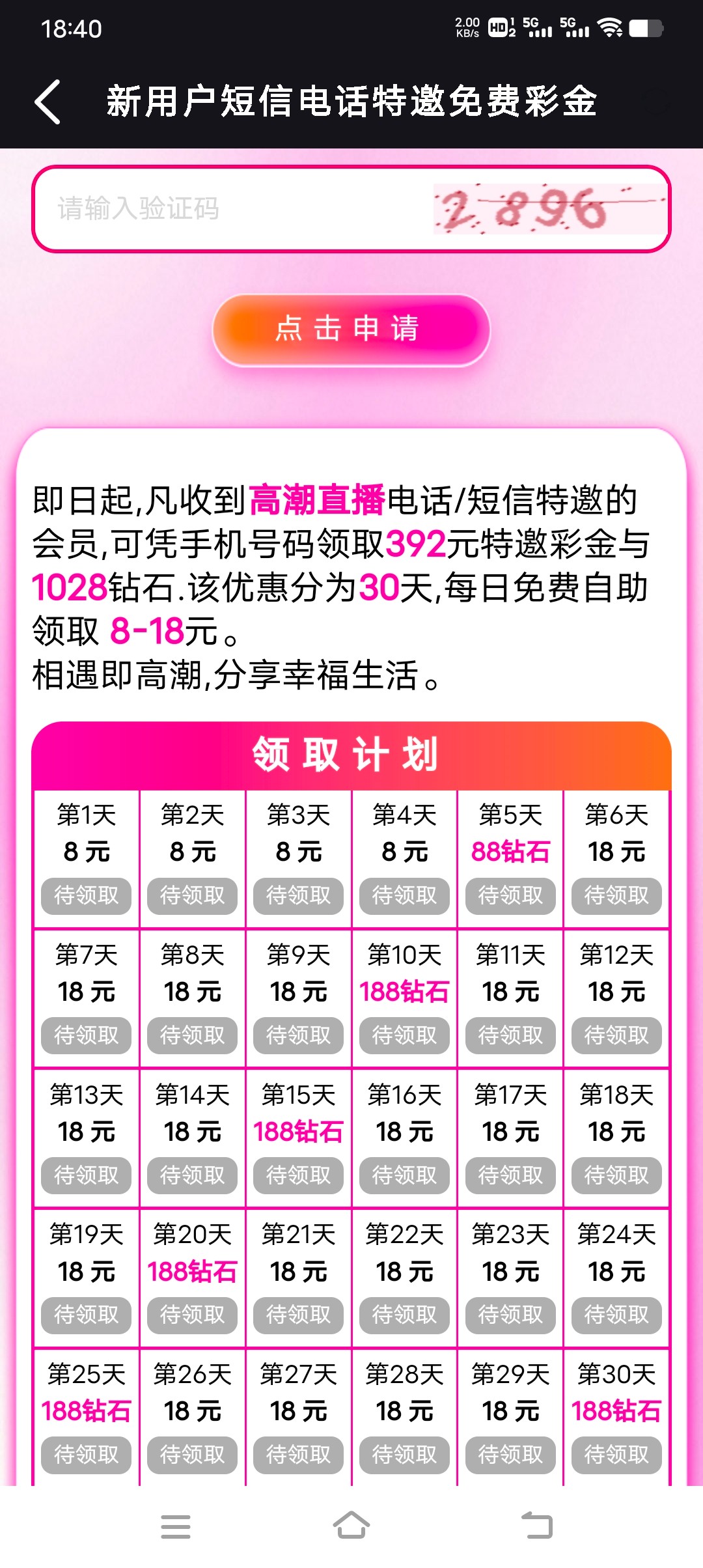 有下方短信的可以去领取 连送30天 亲测已领两天 没短信的也可以去碰碰