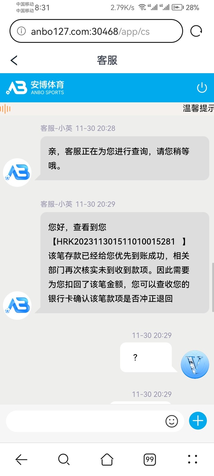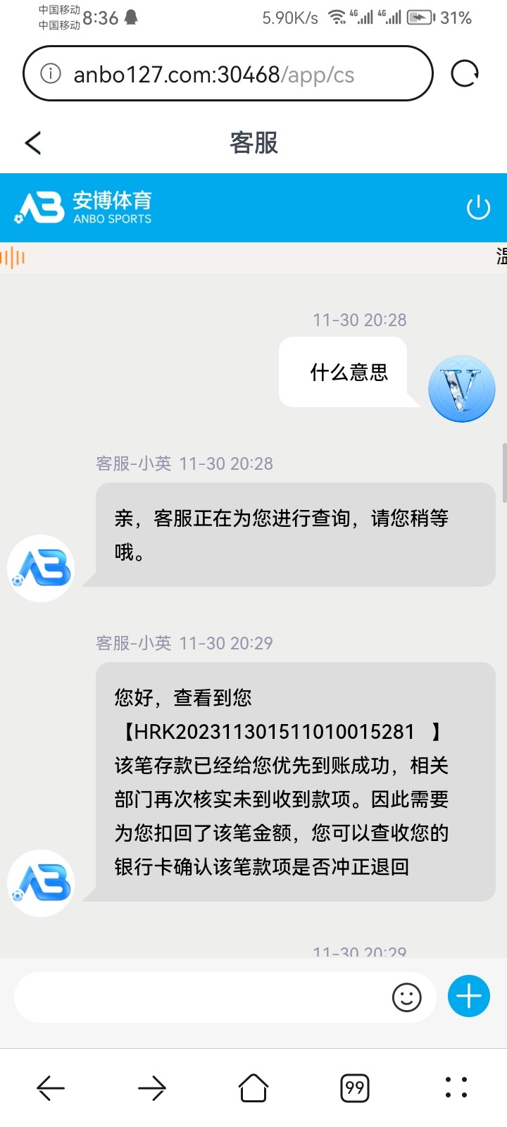 安博恶意锁定余额,已经提现了是没收到我的充值转账,简直离谱搞笑,提现慢,回复慢,还黑纯杀猪台远离。